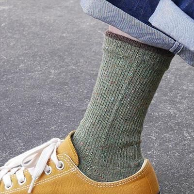 ランダムに入ったカラーネップが、他にはない見た目の靴下になっています。